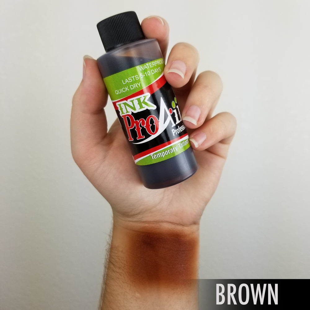 ProAiir™ Temporary Tattoo Ink sprays smoothly at a low PSI, and is water-resistant and must be removed with baby oil or rubbing alcohol.